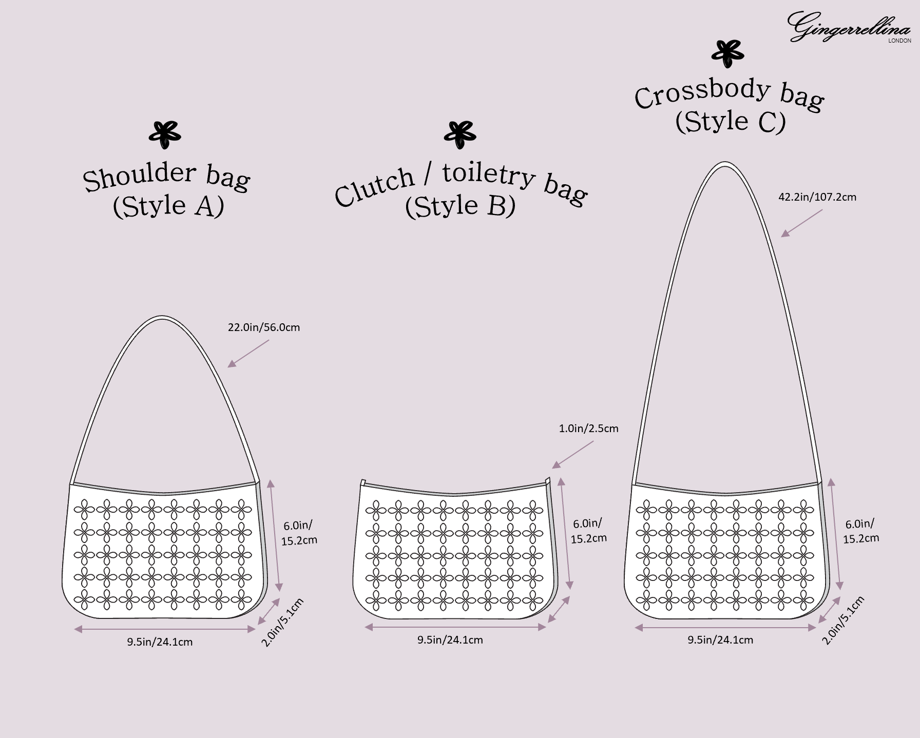 Styles: shoulder bag, crossbody bag, clutch / toiletry bag (please refer to the listing pictures for the measurements)