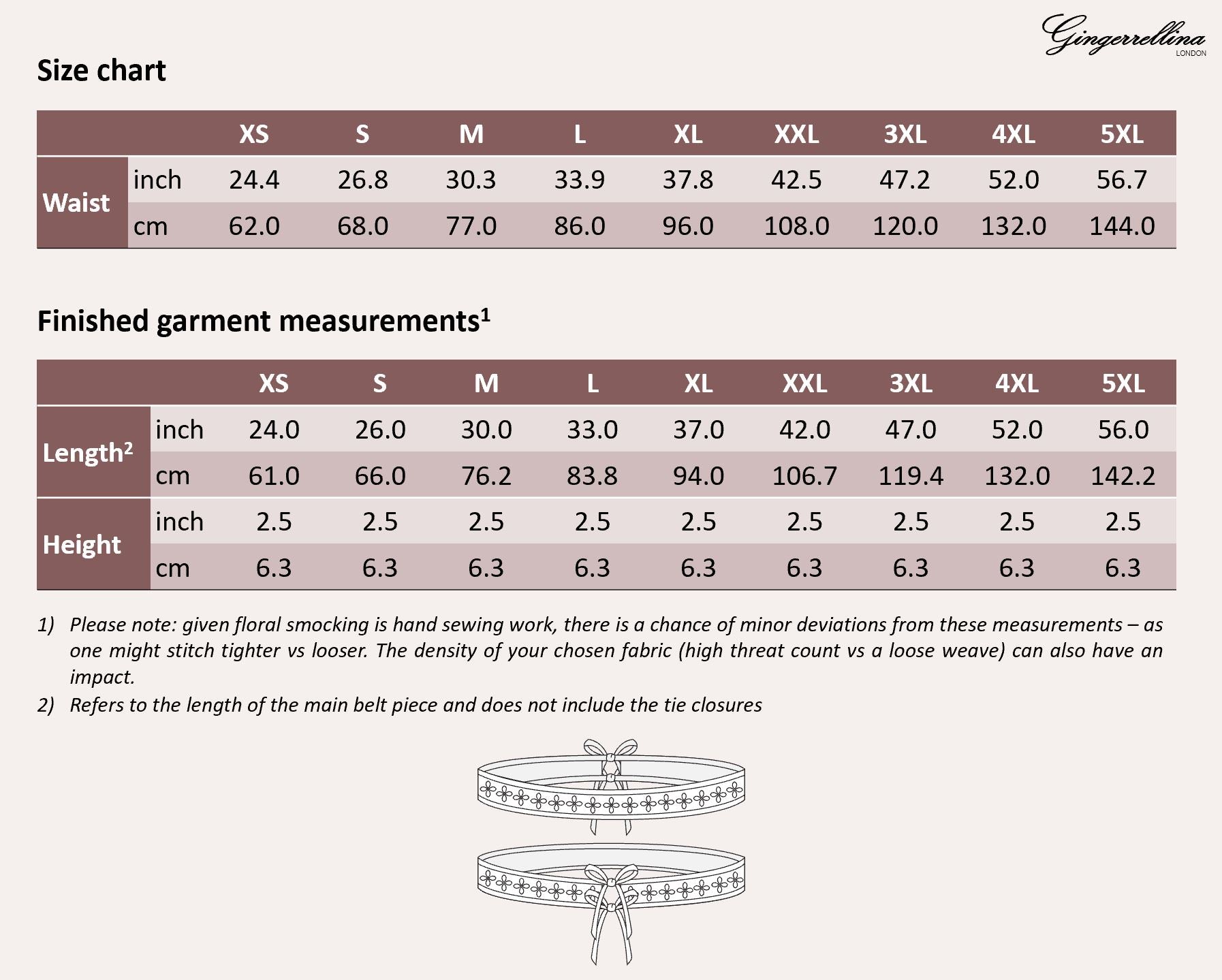 Lancaster floral smocked belt – PDF sewing pattern – sizes XS-5XL