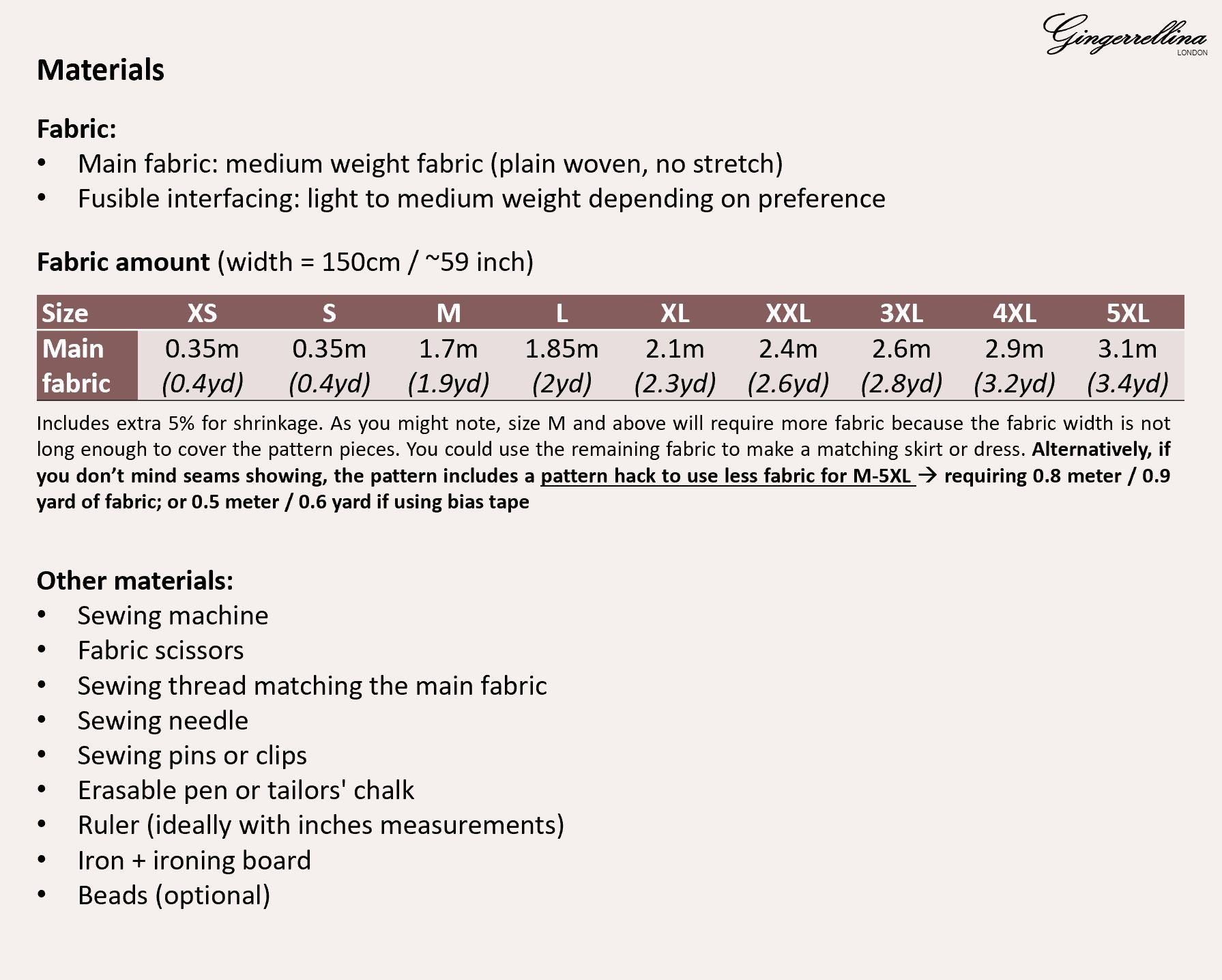 Sewing level: intermediate, confident beginners with some sewing experience also welcome. Having some hand sewing experience will also be helpful in completing this pattern.